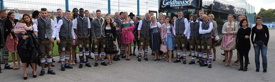 Gefallen hat ihn wohl das Lob von Friseurmeister Josef Wieser über die Lederhosen. Torsten Fröhling aus Bützow trug Lederhosen mit dem Löwenlogo. „Alle meine Jungs tragen so eine Hose“, erklärte er stolz. Gut, dass er nicht Buben gesagt hat. Und richtig: Als die Spieler der ersten Mannschaft ihre Damen in Empfang nahmen und die Frisuren des Wieser-Teams bewunderten, hatte jeder sein Wiesn-Outfit an. Mit dem Sponsorenbus ging es dann zum Oktoberfest. Josef Wieser ist mitgefahren, ich bin lieber draußen geblieben, sonst müsste ich mich noch über Fußball unterhalten.