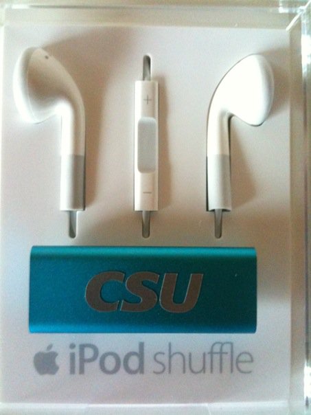 Die bayerische CSU hat den iPod als Werbeträger für sich entdeckt und einen eigenen CSU iPod shuffle herausgebracht. Auf der Facebook-Seite der Generalsekretärin Dorothee Bär wurde am Samstag ein Foto von einem CSU-gebrandeten iPod Shuffle verbreitet. Natürlich kam nur das blaue Modell in Frage.