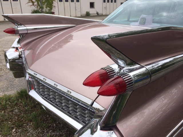 Und wie ist der Zufall will, stand ein Fleetwood Cadillac aus dem Jahre 1959 vor meiner Tür. Mein Gott, was waren das für Formen, was waren das für Autos! Schaut euch alleine nur die Heckflossen an. Es war eine Zeit, in der Autofahren noch Spaß gemacht hat. Es war eine Zeit, ohne Staus auf der Autobahn und ohne dass man sich über den Benzinpreis Gedanken machen musste. Fahren ohne schlechtes Gewissen. Es war die goldene Zeit der Straßenkreuzer. Und vor mir stand eben dieser Cadillac aus dem Jahre 1959. Sage und schreibe hatte der Fleetwood Cadillac insgesamt 325 PS unter seiner Motorhaube.
