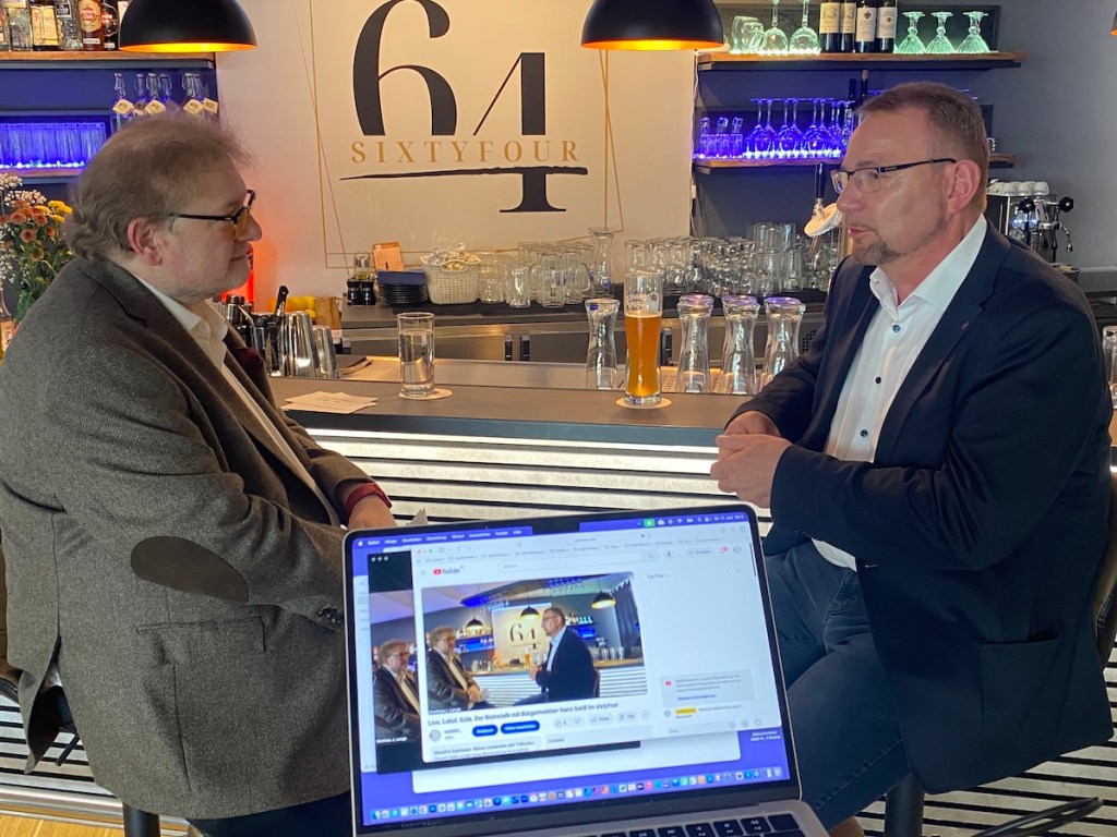 Vor kurzem fand im Bistro Sixtyfour in der Maisacher Zentrumspassage der erste Maisacher Bistrotalk statt – ein neues kommunalpolitisches Gesprächsformat von Matthias J. Lange, das live auf YouTube übertragen wurde. Zu Gast war der Maisacher Bürgermeister Hans Seidl, der sich in entspannter Atmosphäre den Fragen des Moderators stellte. Im Fokus standen zentrale Themen der Kommunalpolitik, die aktuelle Lage in der Gemeinde sowie persönliche Einblicke in das Leben und Wirken des Bürgermeisters.