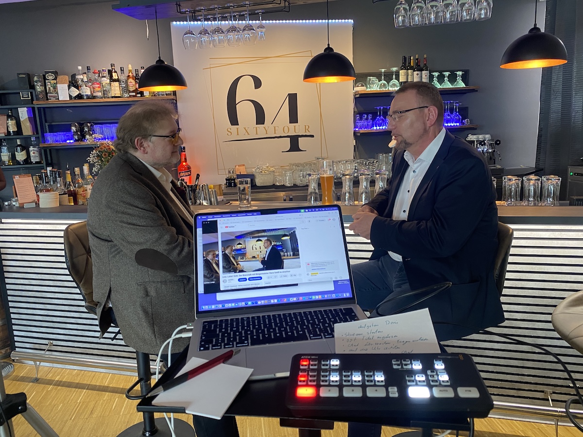 Vor kurzem fand im Bistro Sixtyfour in der Maisacher Zentrumspassage der erste Maisacher Bistrotalk statt – ein neues kommunalpolitisches Gesprächsformat von Matthias J. Lange, das live auf YouTube übertragen wurde. Zu Gast war der Maisacher Bürgermeister Hans Seidl, der sich in entspannter Atmosphäre den Fragen des Moderators stellte. Im Fokus standen zentrale Themen der Kommunalpolitik, die aktuelle Lage in der Gemeinde sowie persönliche Einblicke in das Leben und Wirken des Bürgermeisters.