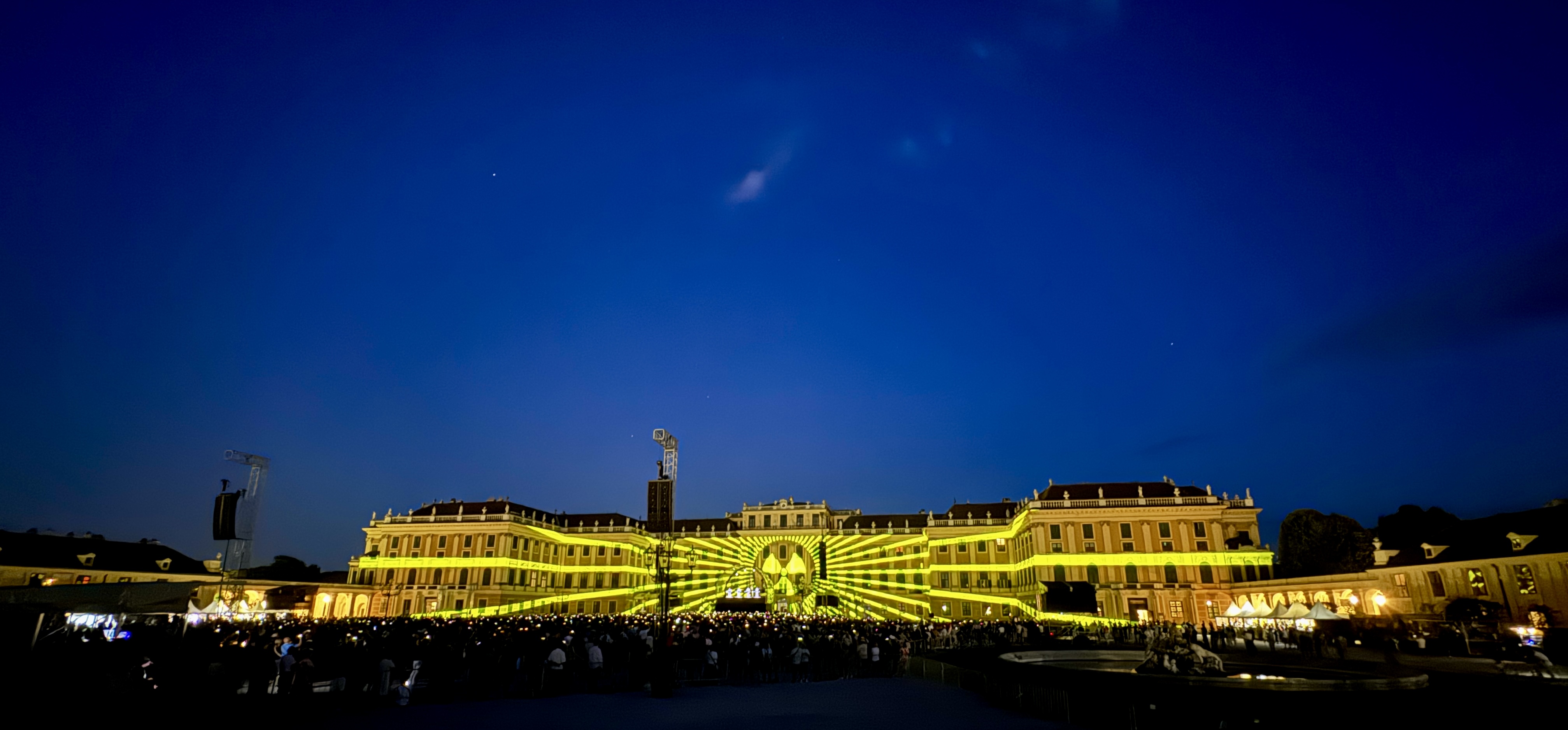 Der Himmel über dem Schlossplatz färbt sich langsam violett. Die Jazzopen 2025 haben geladen, und mit Kraftwerk steht eine Legende der elektronischen Musik auf dem Programm. Schon Stunden vor Beginn ist die Atmosphäre elektrisiert. Menschen aller Generationen strömen herbei, viele tragen T-Shirts mit den ikonischen Kraftwerk-Grafiken, einige sogar in Anzügen und Krawatten – Hommage an die Ästhetik der Band. Ich habe nach Essen und Wien nun die wichtigste deutsche Band zum dritten Mal gesehen, jedes Mal mit einem anderen Konzept, aber immer mit der für mich wegweisenden Musik. Es wird immer weiter gehen, Musik als Träger von Ideen.
