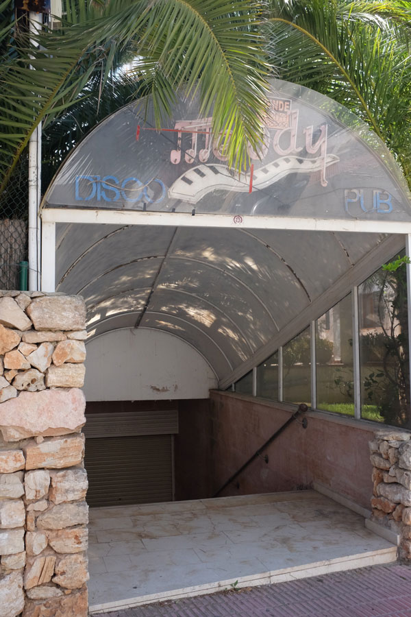 Da wäre einmal ein Kellerloch. Da kann man ne prima Disco eröffnen. Unter der Erde hört man den Krach nicht und es ist sicherlich saucool, in Malle eine Hüpf- und Anmachbude aufzumachen. Vor allem in einem Gebiet in dem lauter Rentner und Familien mit Kinder urlauben. Ich stell mir so ein spanisches Studio54 vor. Im Moment verkaufen ein paar Frauen billigen Schmuck vor dem Eingang, illegal versteht sich. Wer sollte sie denn verscheuchen, außer der künftige Mieter der Disco.