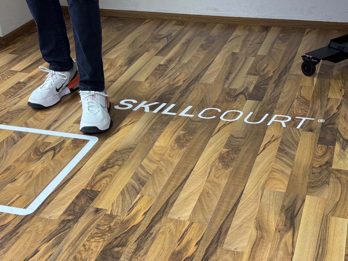Im praktischen Teil zeigte das Team, wie Skillcourt als fehlendes Bindeglied zwischen Physiotherapie und medizinischem Training arbeitet. Das bodenintegrierte 3×3-Feld erkennt mittels Lasertechnologie jede Schritt- und Gewichtsverlagerung, die große Konsole steuert Übungen und erfasst Messdaten; eine Kamera unterstützt die Diagnostik (z. B. Schulter-Winkel nach OP). Von Return-to-Walk und Return-to-Sport über Seh-, Reaktions- und Gedächtnisübungen bis zu Entscheidungs- und Orientierungsaufgaben: Die Programme passen sich dem Leistungsstand an, liefern unmittelbares Feedback und bleiben spielerisch – für Kinder ab etwa sechs Jahren, ambitionierte Sportlerinnen und Sportler, Reha-Patientinnen und -Patienten ebenso wie für Seniorinnen und Senioren. Damit ergänzt Skillcourt Beweglichkeit, Kraft und Ausdauer im Zentrum ideal und macht Training messbar, motivierend und sicher.