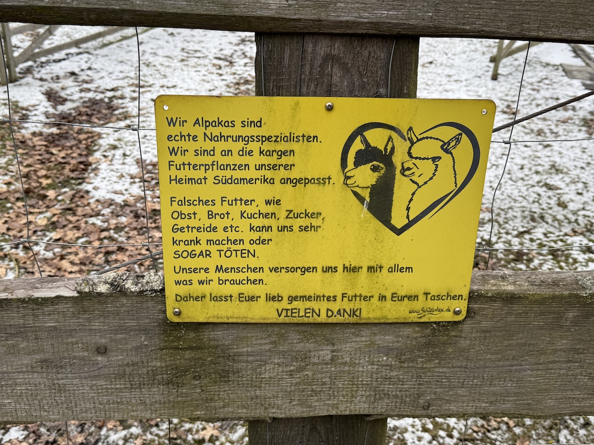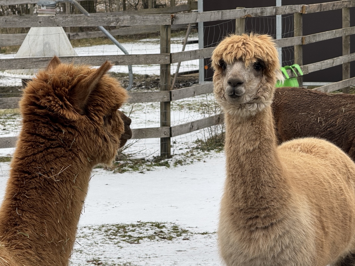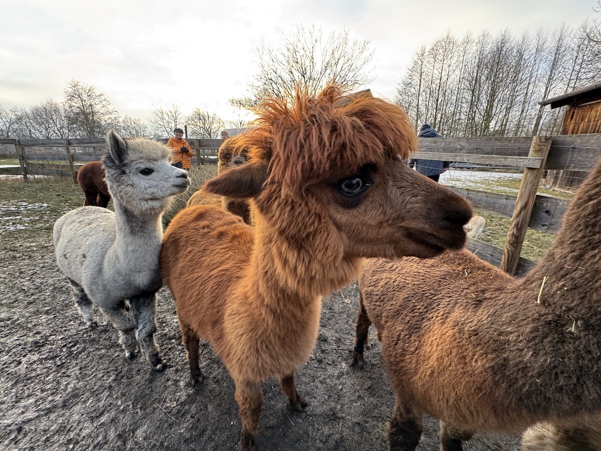 Fast zwei Stunden bin ich abwechselnd mit Anton und Ludwig durch die Kälte gelaufen. Anton und Ludwig sind ganz brav neben mir her getrottet, während ich mit ihnen gesprochen habe. Geantwortet haben sie nicht, denn Anton und Ludwig sind Alpakas.
