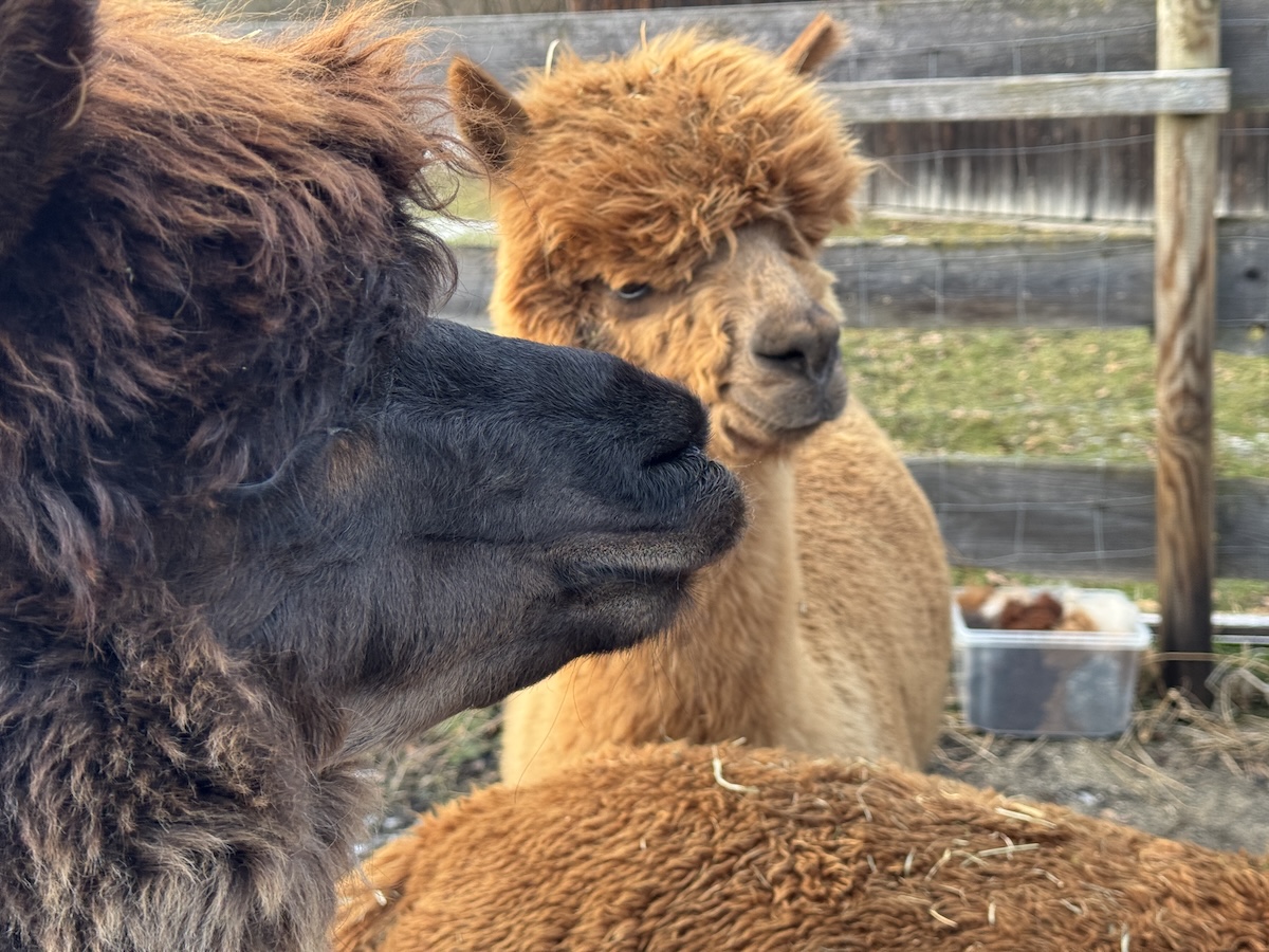 Sie kommen vom Amperland Aplaka-Hof aus der Gemeinde Maisach. Angelika Bartsch und Roman Köhler haben sich einen Traum erfüllt und halten dort neun Tiere. Die wuscheligen Gesellen kommen ursprünglich aus Südamerika. 2016 haben die beiden sich bei einem Trekking in die schönen Tiere verliebt und die Gründung eines eigenen Hofs beschlossen. Im Laufe der Jahre ist die Herde an Alpakas angewachsen. Man kann sie für Spaziergänge mieten, aber sie werden auch therapeutisch eingesetzt, denn Angelika Bartsch ist Erzieherin. Kindergarten-Gruppen,Teilnehmer aus Ferienprogrammen und Gruppen von heilpädagogischen Einrichtungen sind beim Amperland Aplaka-Hof immer willkommen. Und auch ich habe gemerkt, dass die freundlichen Tiere eine Ruhe ausstrahlen, die sich auf mich übertragen hat. Alpakas werden zunehmend in der tiergestützten Therapie und als Wanderbegleiter eingesetzt, da sie als sanftmütig und stressreduzierend gelten.