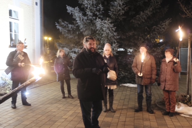 Bürgermeister Hans Seidl versorgte uns mit Fackeln.