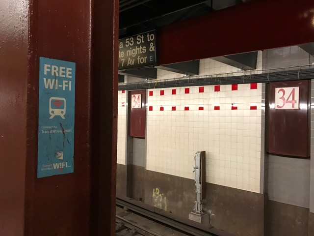 Und dann wäre dann noch die New Yorker U-Bahn. Auch hier gibt es ein kostenloses WLAN. Zumindest in den Bahnhöfen hat es funktioniert, während der Fahrt allerdings nur bedingt. Hinweisschilder in den Bahnhöfen weisen auf die SSID hin. Während man auf seine U-Bahn wartet, kann man kostenlos im Netz surfen – in New York eine Selbstverständlichkeit, bei uns in München eine Utopie.