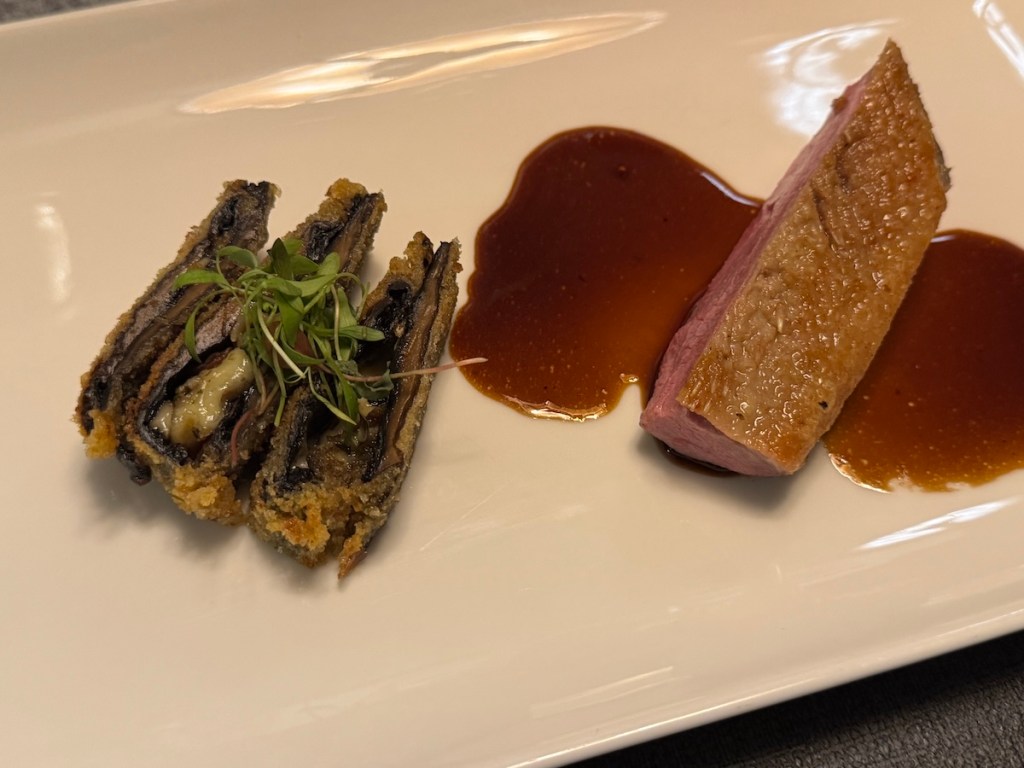 Filet in Hanfnuss-Kruste mit Rotweinschalotte. Dazu 2019 Saperavi Réserve Royale