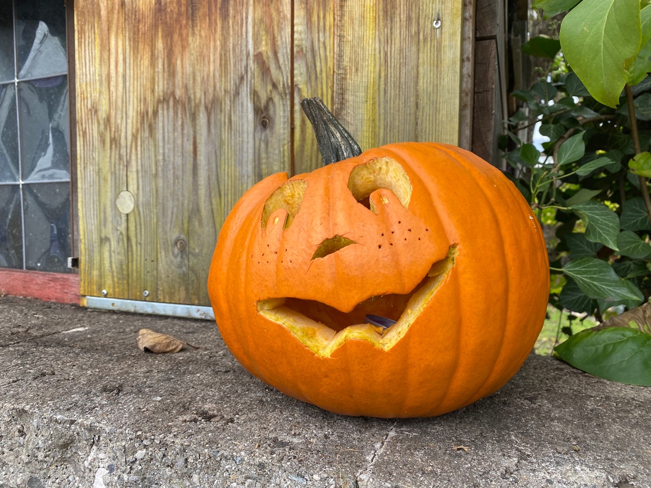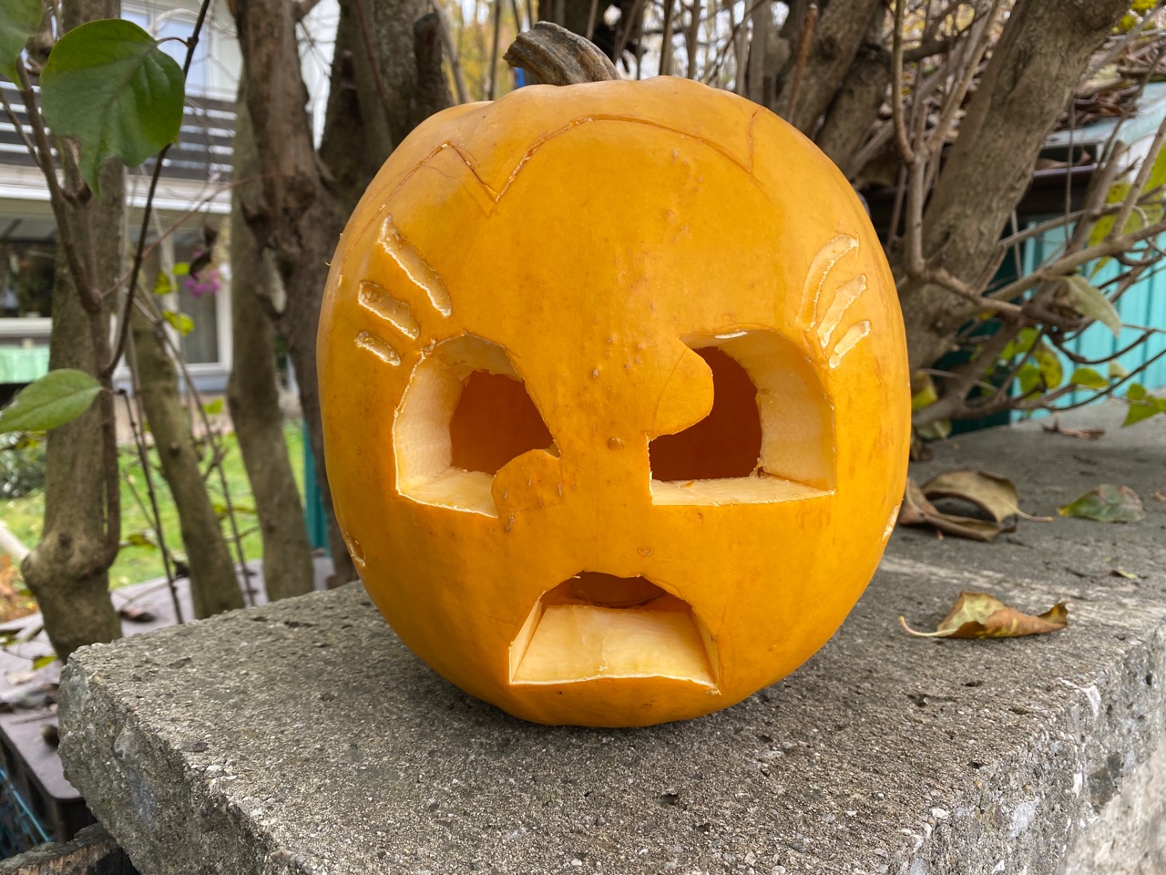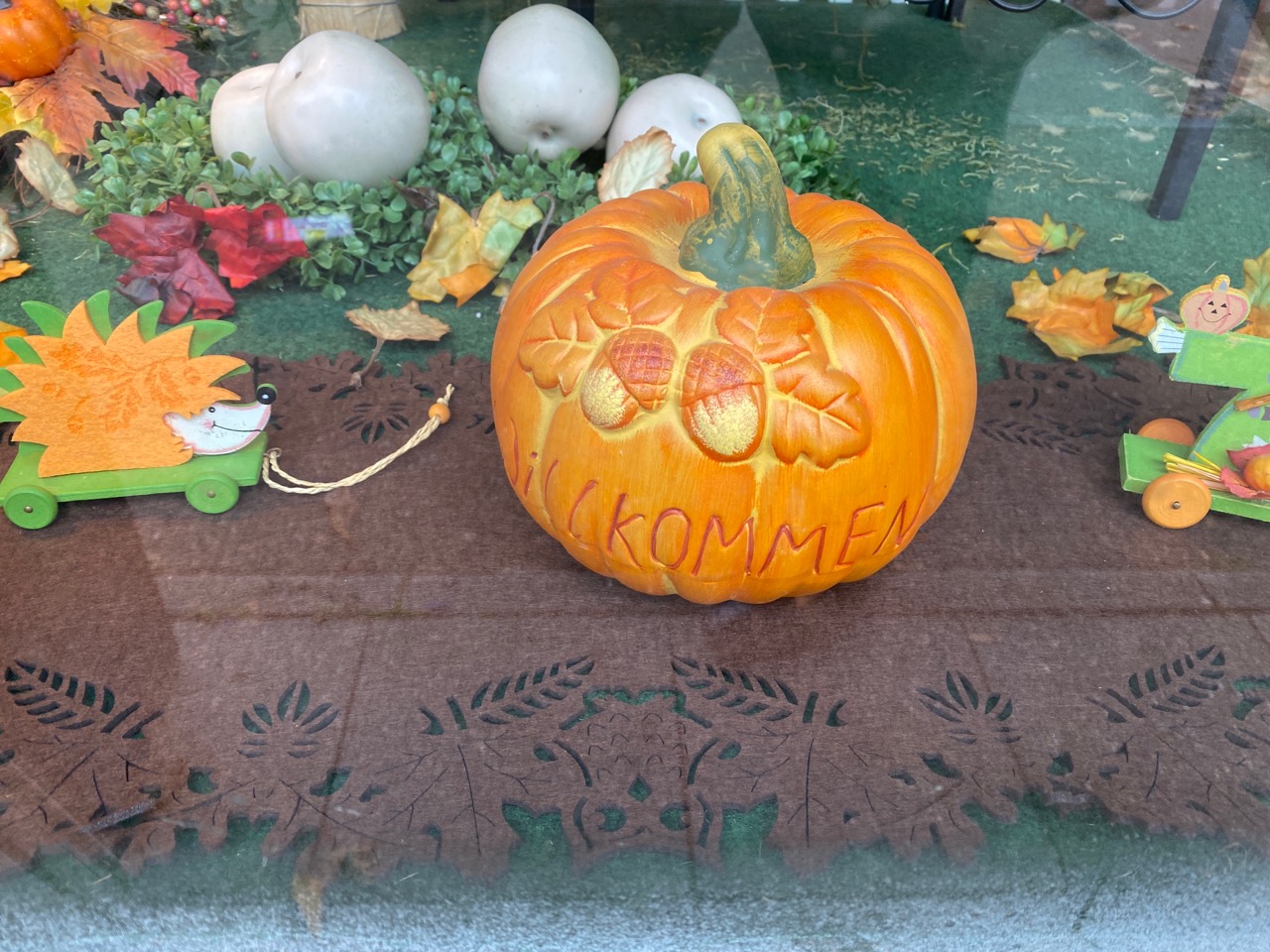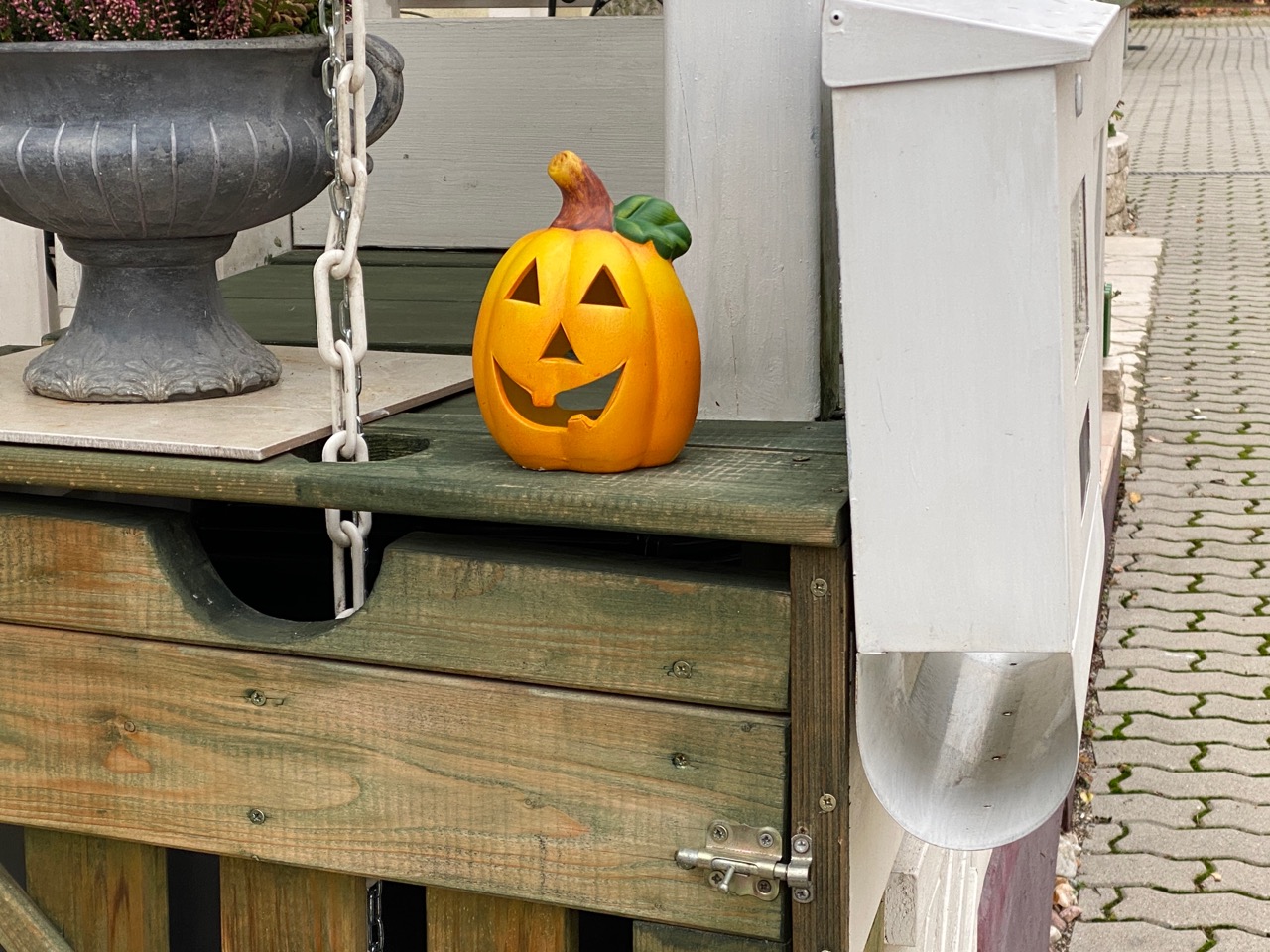 Zu Hause gab es auch kein Süßes und Saures – es hatte auch kein Kind geklingelt. Aber ein paar Familien bei uns im Dorf haben ein wenig Halloween-Stimmung verbreitet und Kürbisse vors Haus gestellt. Am Morgen nach Halloween beim Gang zum Bäcker habe ich ein paar von den Kürbissen fotografiert. Danke für diese freundliche Geste. Zu einem längeren Spaziergang hatte ich aufgrund Regen keine Lust. Bleibt gesund.