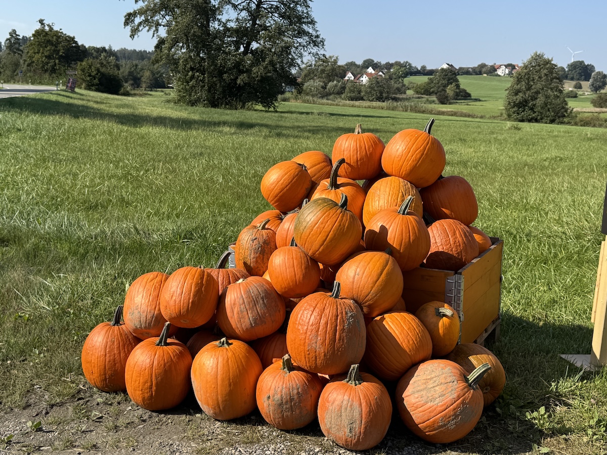 Es ist wieder Kürbiszeit und ich war mit meiner Gattin in der Nähe von Aichach unterwegs. Am Straßenrand standen verschiedene Stände mit Kürbissen aller Art und allen Größen. Wir hielten an und bestätigten uns gegenseitig, dass Kürbissuppe eine Bereicherung unseres kulinarischen Lebens sei. Außerdem steht Halloween vor der Tür und ich feiere dieses Feschen mit einem ausgehöhlten Kürbis vor der Haustür.