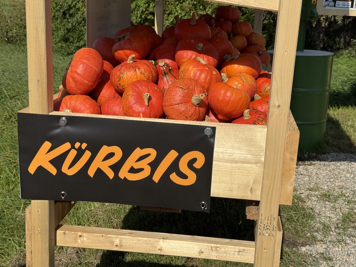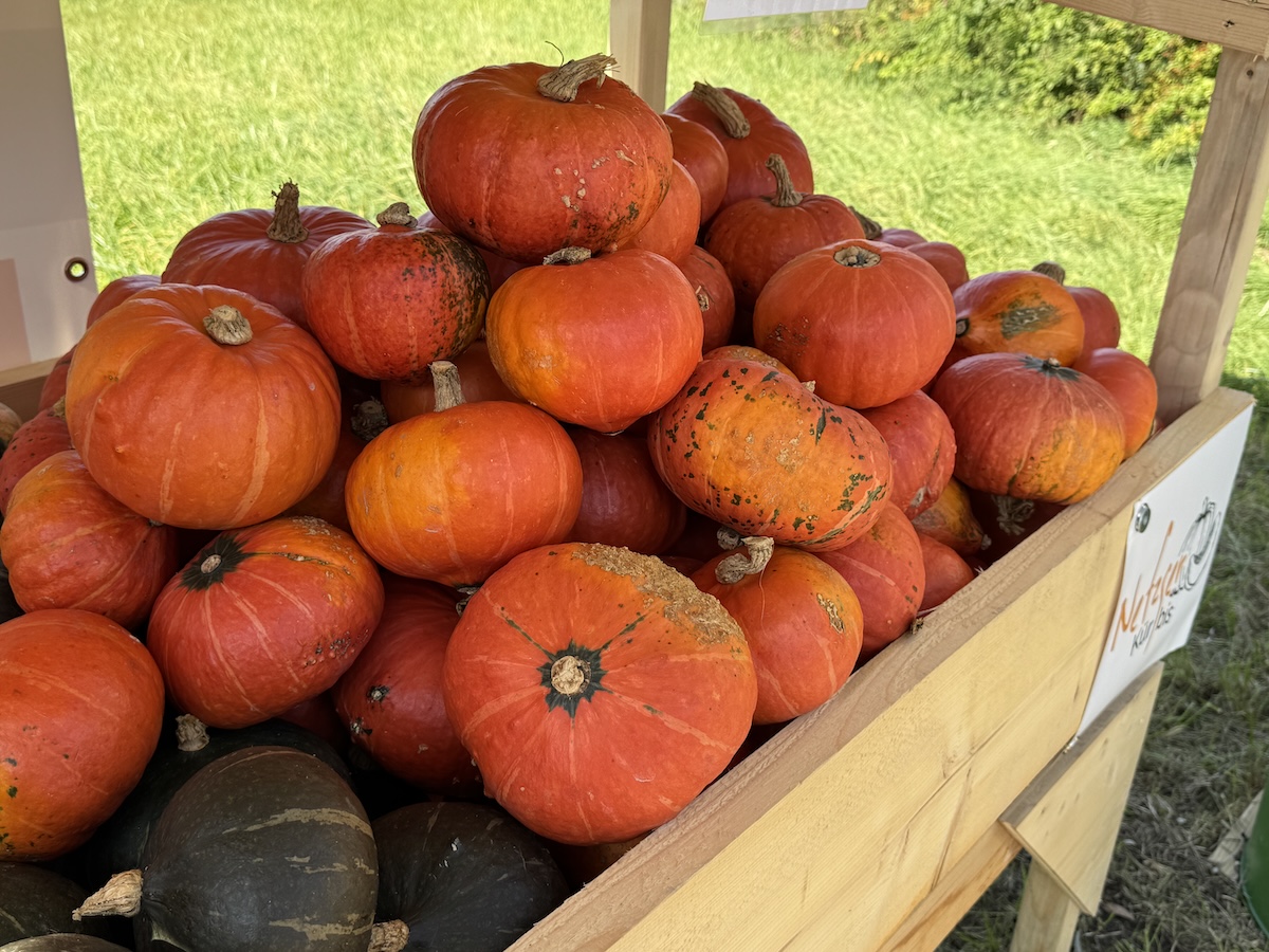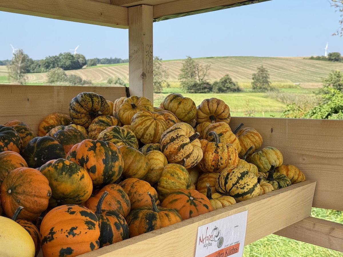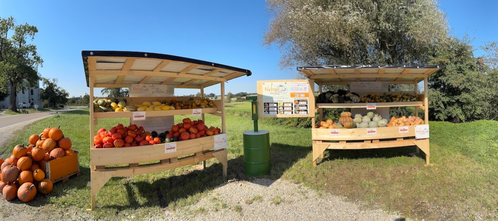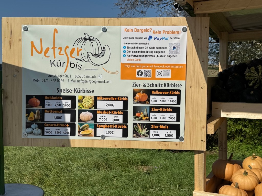Interessant war bei einem Kürbisstand, dass es nicht nur eine Kasse des Vertrauens gab in denen die Käufer Münzen und Scheine einwerfen sollten. Es gab auch die Möglichkeit via PayPal zu überweisen. So geht Kürbiskauf im 21. Jahrhundert.