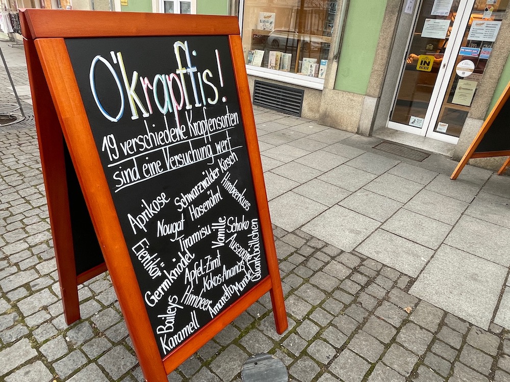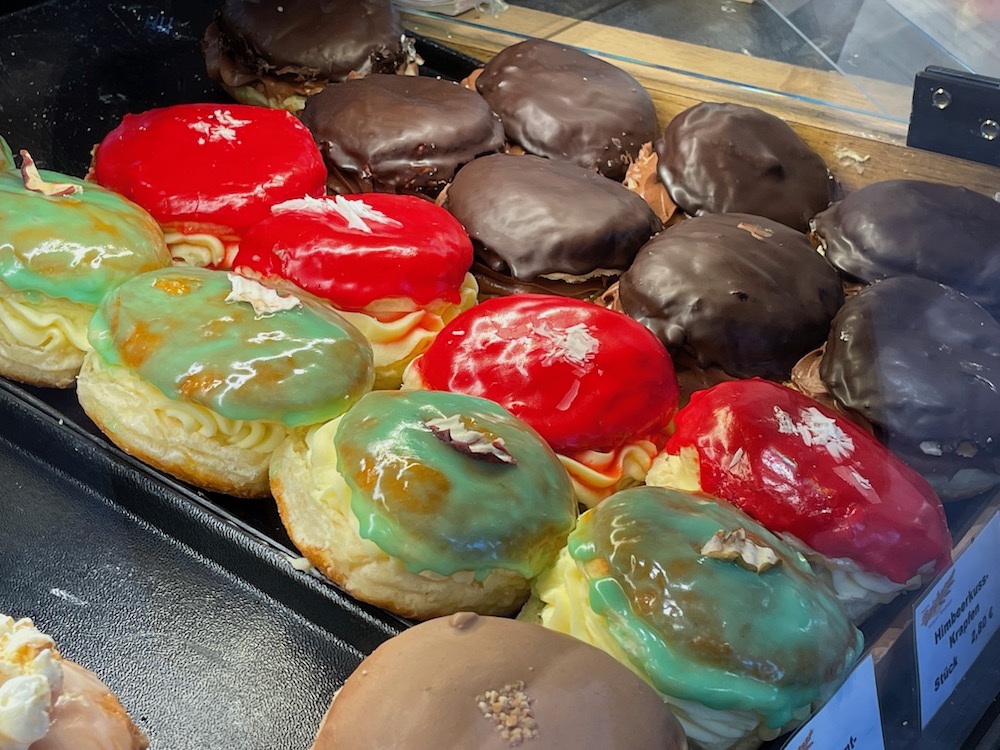 Es gibt nichts, was es nicht gibt bei den Faschingskrapfen. Sie sind ausgefallen, bunt oder normal. Bei meinem Stammbäcker Bäckerei Konditorei Martin Reicherzer in Fürstenfeldbruck, für den ich auch ein wenig PR in Facebook und Instagram mache, gibt es 19 verschiedene Sorten von Krapfen. Ob klassisch mit Marmelade oder extravagant mit Pistazien-, Kaffee- oder Eierlikörfüllung – der Fantasie der Bäcker ist beim Gestalten und Füllen ihrer Krapfen keine Grenzen gesetzt.