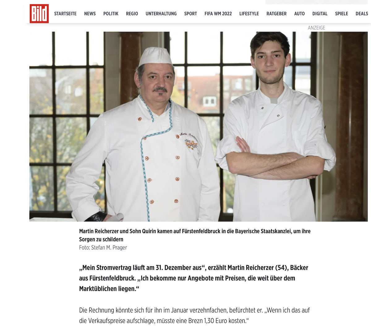 Ich begleitete meinen Kunden, die Bäckerei Konditorei Martin Reicherzer aus Fürstenfeldbruck und Aubing, zu dem Termin in die Staatskanzlei. Ich schoss Fotos, drehte Videos und ich hörte vor allem aufmerksam zu was er und seine Kollegen zu sagen hatten. Was ist hörte, war pure Verzweiflung der Betriebe, die mit dem Rücken zur Wand stehen. Es gelang uns, noch ein Interview mit der BILD zu führen, die am nächsten Tag in Print und Online im Münchner Teil über die Aktion groß berichtete. So bekommt man Aufmerksamkeit auch gegenüber der Kunden und kann Druck auf die Politik ausüben.
