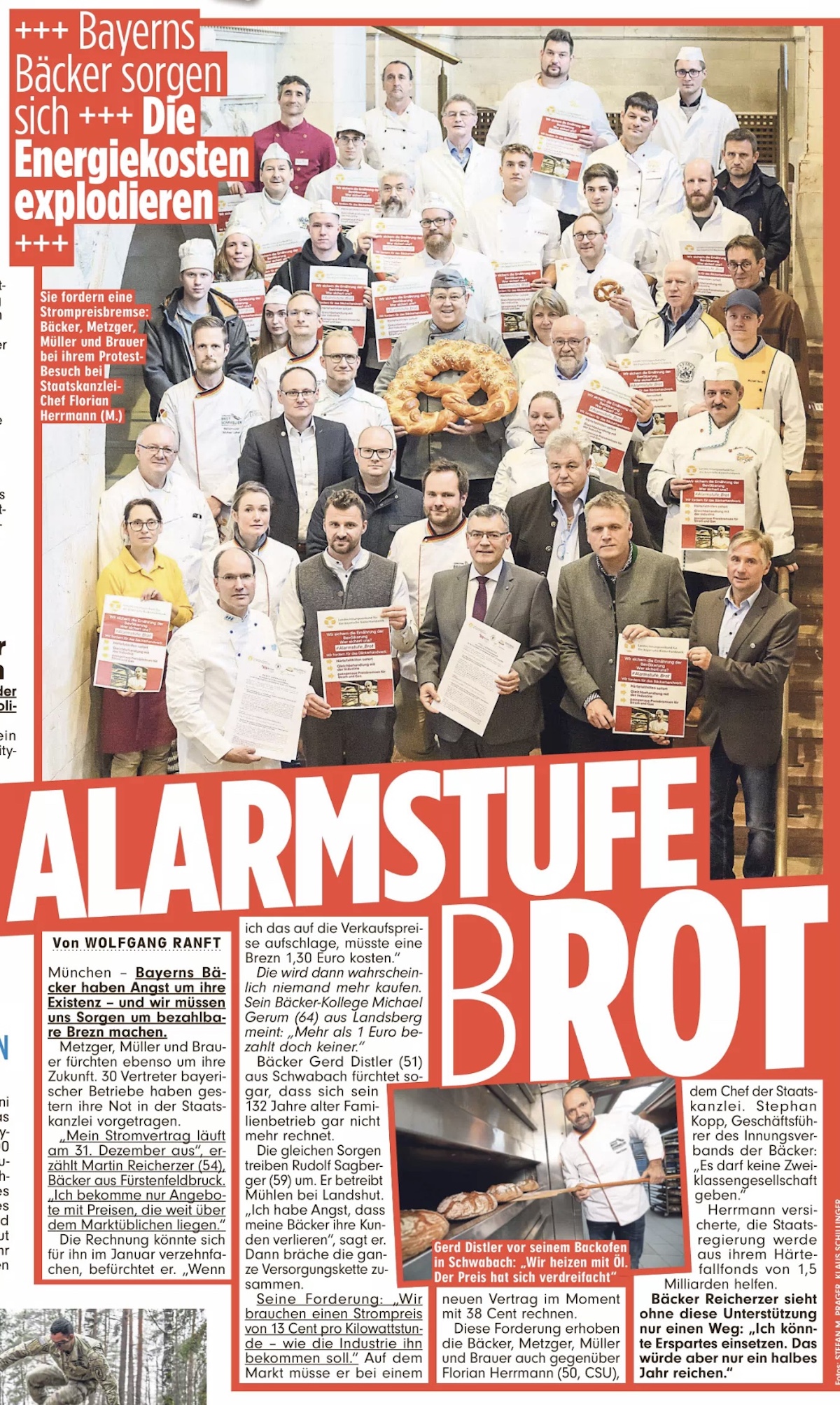 Soll die handwerkliche Breze künftig 1,50 Euro kosten? Das droht uns, wenn die Politik nicht endlich handelt und für Lebensmittelgewerke und den Friseure akzeptable Energiepreise durchsetzt. Ich hab es selbst miterlebt. Den bayerischen Bäckern steht das Wasser bis zum Hals und viele Handwerksbäcker haben schon ihren Betrieb eingestellt. Daher haben die bayerischen Lebensmittelhandwerker wie Bäcker, Metzger, Brauer, Konditoren und Müller eine Petition an den bayerischen Staatsminister Florian Herrmann überreicht, der die Forderungen der Handwerker unterstützt.