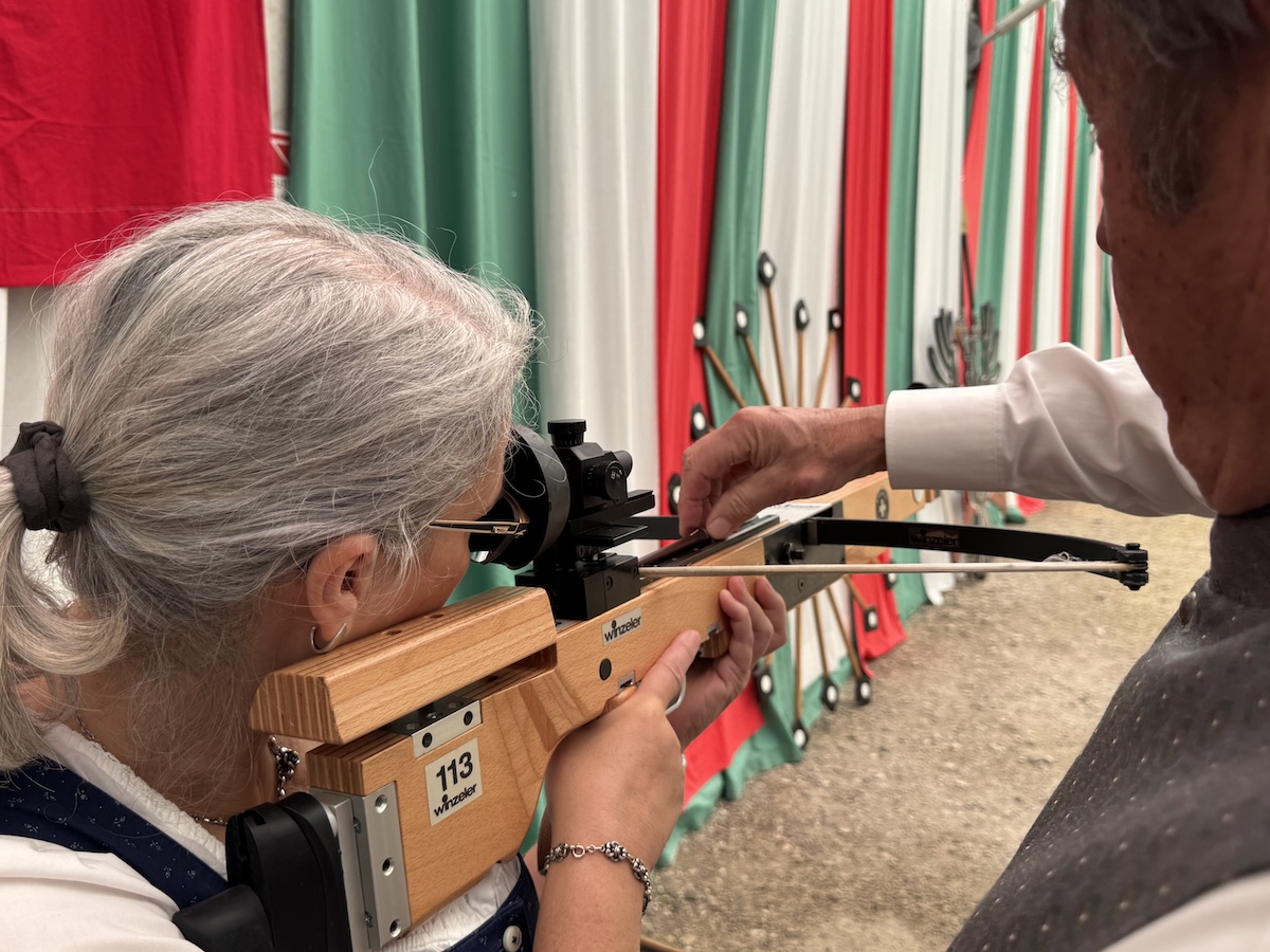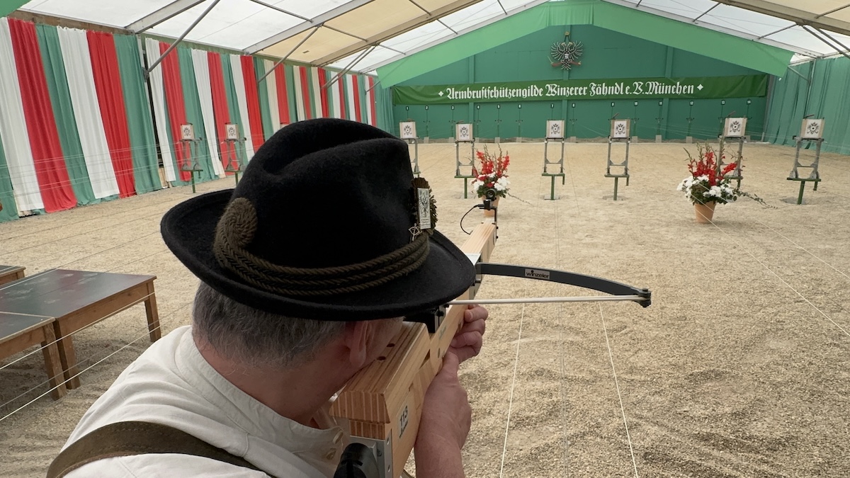 Das Armbrustschützenzelt bietet dafür die perfekte Kulisse. In dem festlich geschmückten Zelt herrscht eine einzigartige Doppelatmosphäre: Auf der einen Seite der Trubel des Festzelts mit Musik, Bier und bayerischer Küche, auf der anderen Seite der Bereich, in dem Wettkampfordnung, absolute Ruhe und Konzentration gelten.