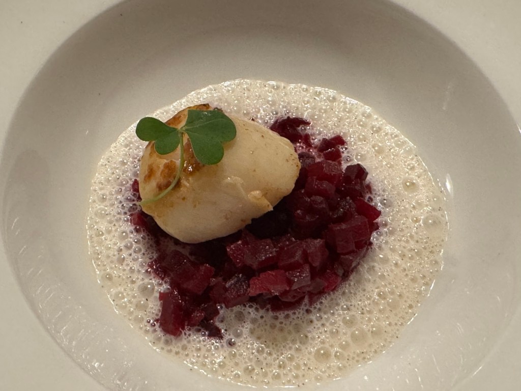 Als Fan von Jakobsmuscheln liebte ich den nächsten Gang mit Rote Vanille, Rote-Beete und Crème fraîche.