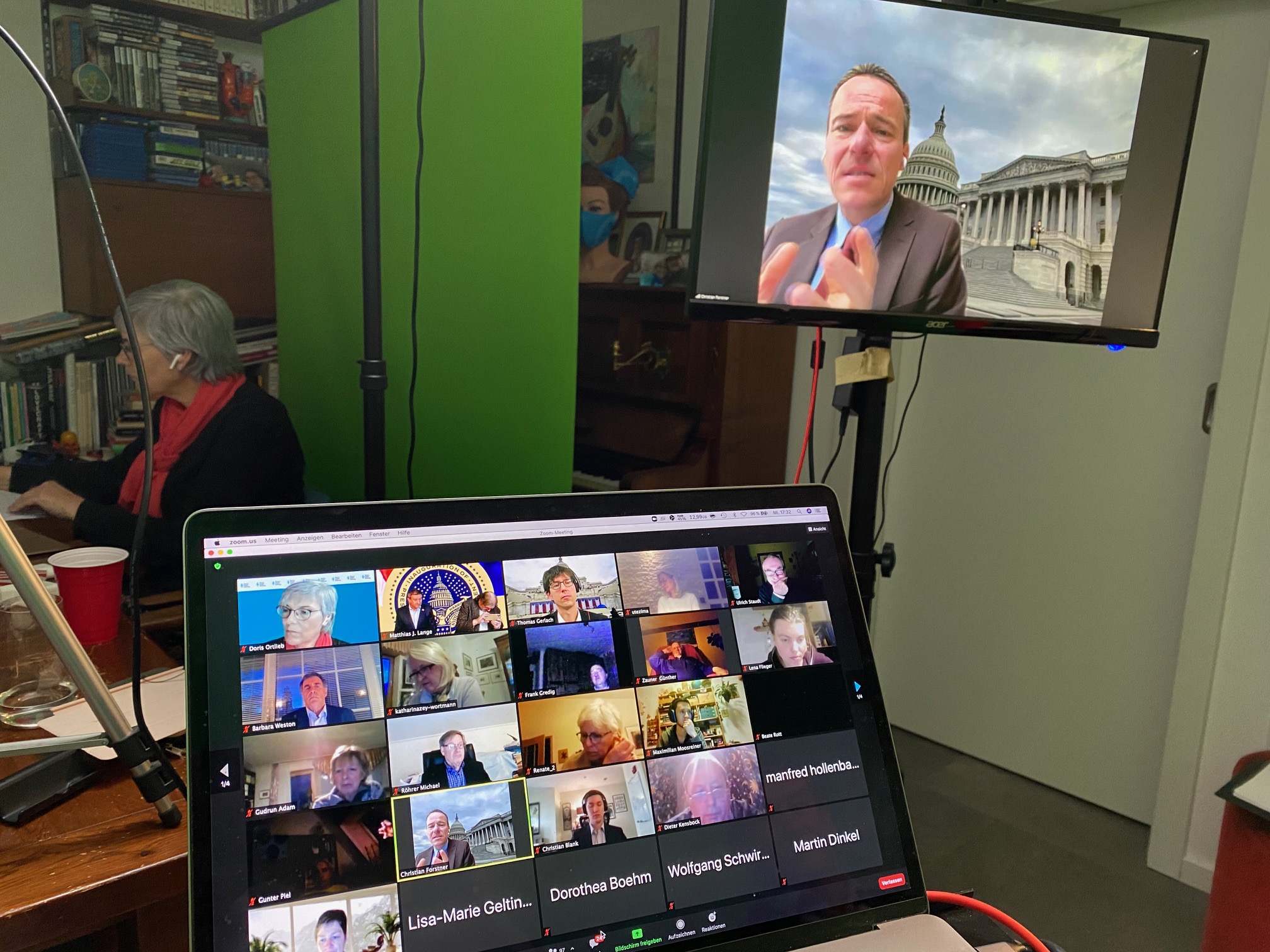 Als erster Referent wurde Christian Forstner von der HSS aus Washington live zugeschaltet. Er beschrieb eindrucksvoll die Atmosphäre in den USA in der Zeit des Wechsels. Er berichtete, wie er den Sturm auf das Capitol erlebt hatte und wie die Stimmung in der US-Hauptstadt ist.
