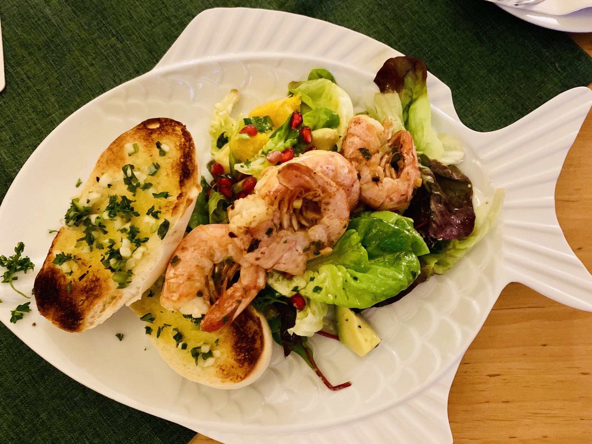 Zum Essen hatte ich Wildgarnelen in Öl gebraten mit Weißbrot. Die Vorspeise war reichlich, aber vor allem gut.