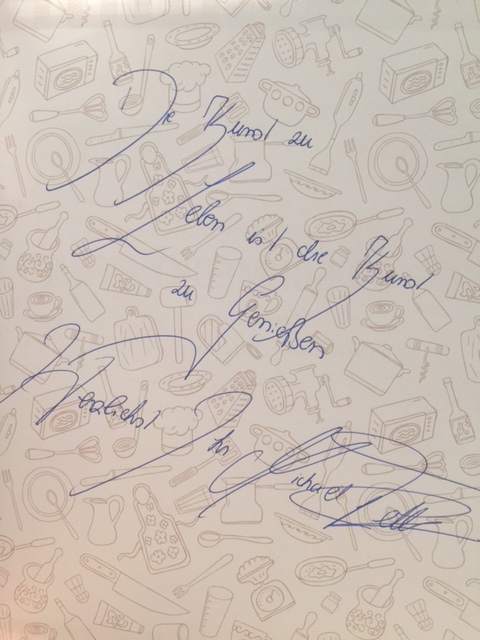 „Die Kunst zu Leben ist die Kunst zu Genießen“, so die Widmung von Sternekoch Michael Fell.