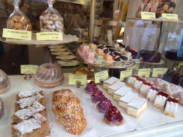 Der Charme der Café-Konditorei Schatz geht von dem alten, gepflegten hölzernen Geschäftsportal und dem angenehmen Mobiliar aus: gedrechselte Tische mit runden Marmorplatten und Bugholzstühle. Immer wieder verbrachte ich dort angehende Nachmittage und schaute dem Treiben zu.