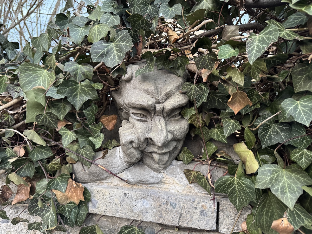 Nun wurde wohl das Haus dahinter verkauft, und der neue Besitzer hat das Efeu um die Figur weggeschnitten. Es sah ein wenig nackt aus.