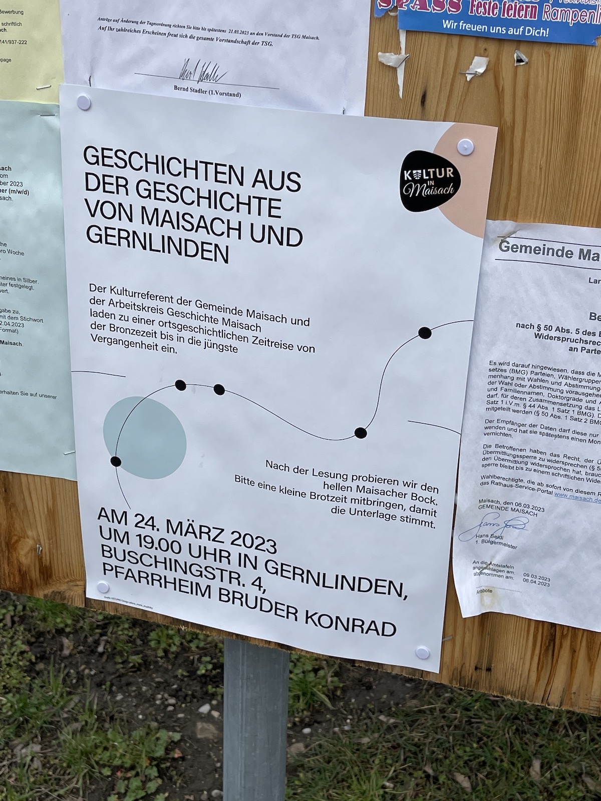 Aus dieser Reihe gab es vom Arbeitskreis jetzt eine Lesung im Gemeindeteil Gernlinden, die regen Zuspruch bei den Bürgern fand. Kulturreferent Stefan Pfannes und das Team des Arbeitskreises trugen auszugsweise Texte vor, die von der Geschichte der Gemeinde handelten. Spontan fielen mir auch ein paar Geschichten ein, die ich in den Arbeitskreis einbringen möchte. Ich hab Lust auf Geschichte.