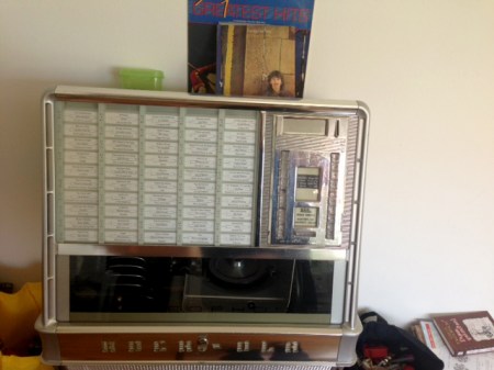 Und die DM? Ab und zu ertappe ich mich, dass ich noch umrechne. Ich habe das Gefühl, dass sich Preise massiv angestiegen sind. Aus DM wurde Euro bei Waren und Dienstleistungen, dennoch hat sich mein Einkommen nicht so entwickelt. Aber das ist nur bei meiner Generation so. Meine Kinder sind mit dem Euro aufgewachsen und rechnen nicht um – und meinen Kindern gehört die Zukunft. Die DM spielt bei uns nur noch eine Rolle. Ich bin stolzer Besitzer einer Rock ola 403 aus dem Jahre 1963. Sie hat Platz für 100 Songs auf 50 Singles (A und B Seiten). Die Seriennummer der Wallmount lautet 257182. Und diese Jux Box muss mit DM-Münzen gefüttert werden.