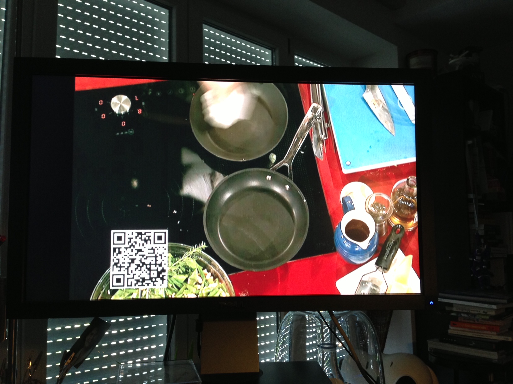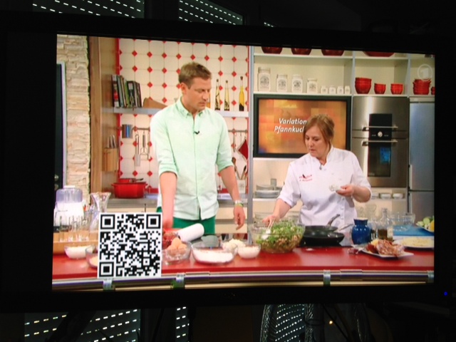 Natürlich kamen wie immer der Satz: „Das Rezept dazu finden Sie bei uns im Internet!“ Aber wie sonst üblich im Fernsehen eine URL einzublenden, kam ein QR-Code auf dem Schirm. Der Code führte mich zur entsprechenden Rezeptseite.