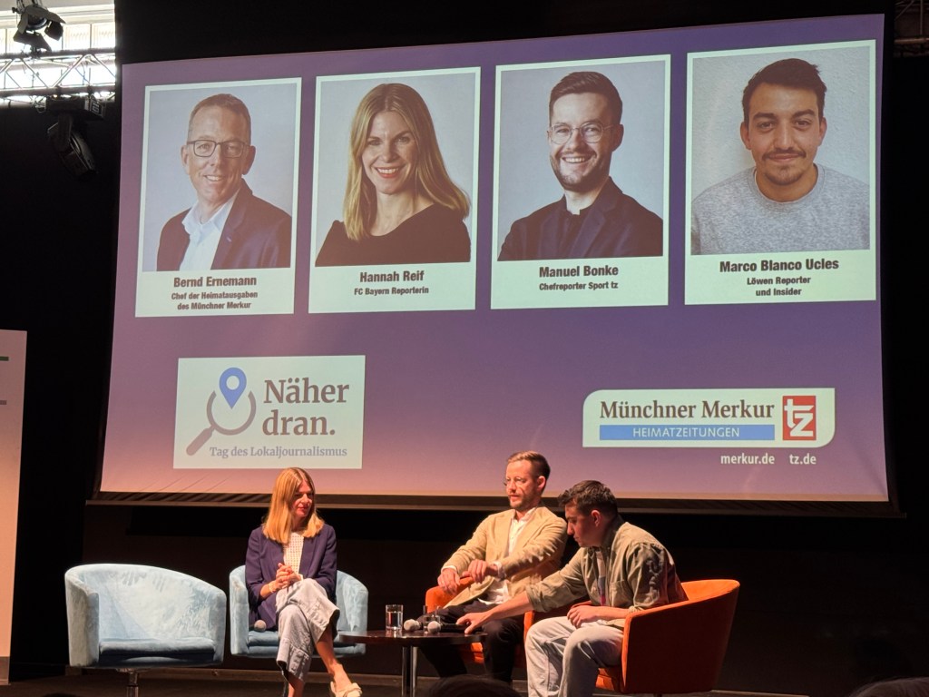 Für mich völlig unwichtig, aber für die Leser enorm wichtig ist der Sportjournalismus. Die Diskussionsrunde war hochkarätig besetzt: Mit dabei waren FC-Bayern-Reporterin Hannah Reif, Bayern-Reporter Manuel Bonke sowie 1860-München-Experte Marco Blanco-Ucles.