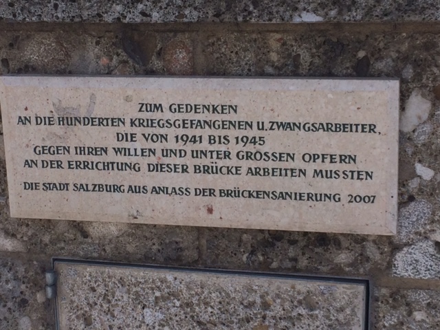 Staatsbrücke in Salzburg mit Kunstwerk Beyond Recall