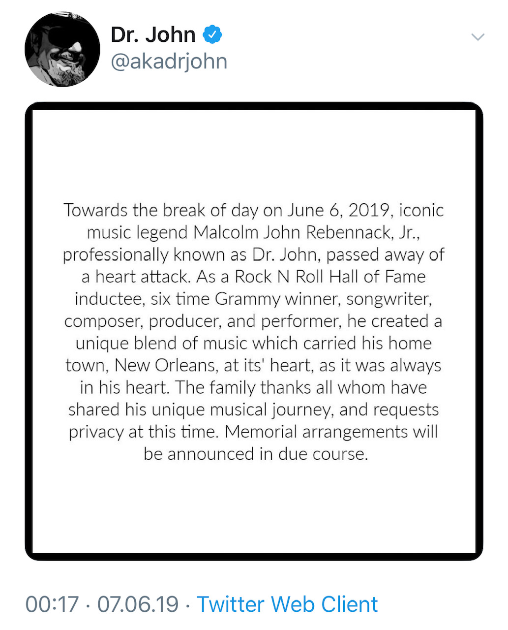 Viele denken an Louis Armstrong, wenn sie an die Musik von New Orleans denken. Mir kommt als erstes Dr. John in den Sinn. Jetzt ist der Voodoo-Musiker im Alter von 77 Jahren verstorben und das tut mir leid.