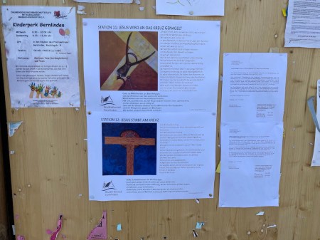 An den gemeindlichen Anschlagtafeln hat die Pfarrei Gernlinden einen öffentlich zugänglichen Kreuzweg erstellt: An den öffentlichen Schautafeln sind jeweils eine oder zwei Stationen des diesjährigen Misereor-Kreuzweges zu sehen. Hier ist eine Karte von Gernlinden mit den Standorten der Tafeln.