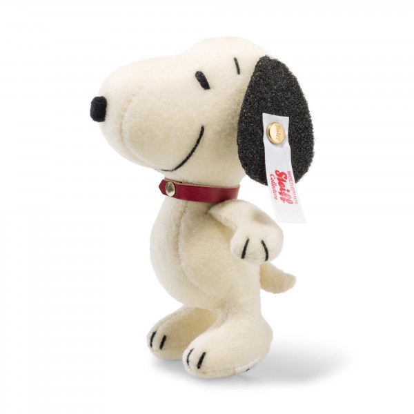 Ich meine den Steiff 658150 Snoopy 10 cm, der als Sammleredition auf den Markt kam. Unverständlich, warum der der Hund in einer untypischen Form bei Steiff erschienen ist. Er steht nämlich aufrecht. Meistens liegt der Beagle doch auf dem Dach seiner Hundehütte und geht philosophischen Gedanken nach, schreib Romane oder fliegt als Roter Baron durch die Lüfte. Naja, mein Snoopy steht also herum, zunächst auf meinen Schreibtisch und später in meiner Steiff-Vitrine mit meinen anderen liebgewonnenen Steiff-Figuren.
