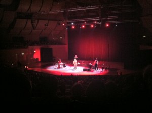 Ihre Karriere begann mit Folk-Standards, die sie auch in München wieder darbot. Und der Tod zog sich durch den Abend: Robbie Robertson und auch John Lennon und das Publikum sang brav mit. Und genau das ist das Langweilige, Vorhersehbare. Sie singt Jahr ein, Jahr aus die gleichen Lieder. Ob ich 1984 Joan Baez gesehen habe, oder 2012 – es ist von der Interpretation und der Auswahl der meisten Songs egal. Und das ist eigentlich das Tragische. Immer wieder holt sie Nachwuchsleute wie einstmals Dylan auf die Bühne und gibt ihnen ein Forum. In München war es die französische Sängerin Marianne Aya Omac. Freilich muss die Dame barfuß die Bühne betreten – wir erinnern uns: Joan Baez gab früher auch ihre Konzerte ohne Schuhe und fuhr dann in ihren Rolls Royce davon. Marianne Aya Omac brachte auch Stimmung in den Kulturtempel Gasteig. Gypsi-Klänge, lateinamerikanische Musik, ja das mag das Münchner Publikum, das brav mitklatschte und sich auf seine Art richtig gehen ließ. Immer brav die Gegenkultur vorantreiben.