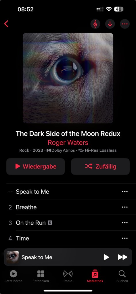 Nun liegt sie vor, die Neuinterpretation von The Dark Side of the Moon Redux von Roger Waters. Das Album von Pink Floyd gehört zu meinen Lieblingsalben und ich habe dieses Jahr sogar ein hervorragend besuchtes Seminar zur Bedeutung des Album gemacht. Rogar Waters, den ich politisch ablehne, musikalisch aber immer gefolgt bin, hat hier seine Version des Albums veröffentlicht. Noch habe ich sie nur auf Apple Music gehört, die Vinyl-Ausgabe kommt dieser Tage.