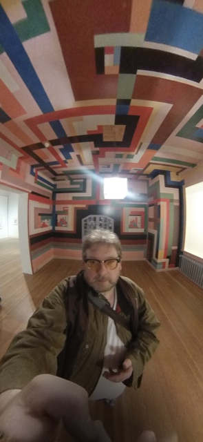 Und dann kam für mich der Höhepunkt der Ausstellung: Wenzel Hablik entwarf komplette Räume. Farben und geometrische Formen überall. Im Martin Gropius Bau wurde das Esszimmer Habliks nachgebaut. Hier verschlug es mir die Sprache. Obwohl es untersagt war, ein Foto zu machen, schoss ich ein 360 Grad Bild, um meiner Frau einen Eindruck von diesem Gesamtkunstwerk zu geben.