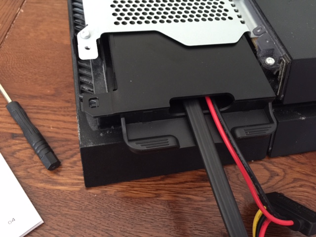 Bei meiner PS3 baute ich vor Jahren eine größere schnellere Festplatte ein und das wollte ich nun auch bei der PS4 tun. Wir entschieden uns für das System DongCoh Game Bar mit 3TB 3,5-Zoll-Festplatte . Über eine Amazon-Angebot ging das System einigermaßen preiswert her. Der Schraubenzieher und das Upgrade-Material lagen der Bestellung bei. Zusammen mit meinem Sohn gingen wir ans Upgrade unserer PS4.