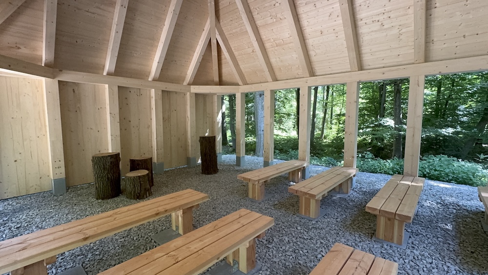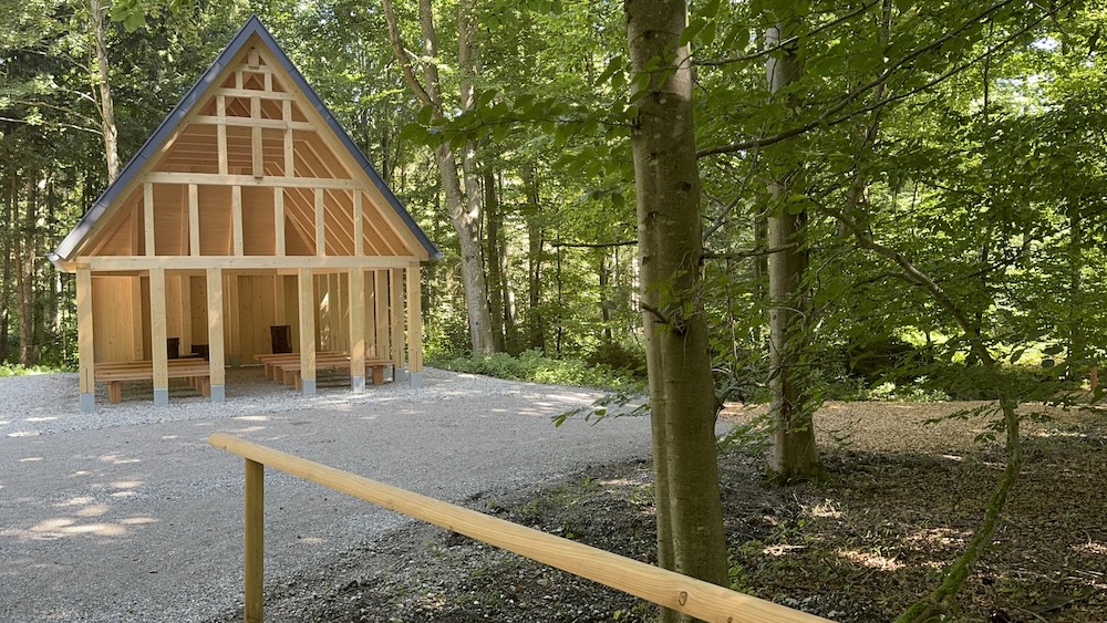 Ein großzügiges Wanderwegenetz mit sand- und rindenmulchbedeckten Pfaden durchzieht den Wald und lädt zu stillen Spaziergängen sowie zum Verweilen auf den zahlreichen Ruhebänken ein. Ein hölzerner Andachtsplatz, eine Art offene Kapelle mit Holzkreuz, bietet Raum für Trauerfeiern, ist aber bewusst dezent gestaltet und steht konfessionsübergreifend allen Glaubensrichtungen offen. Insgesamt bietet der Bestattungswald Platz für rund 1.800 Urnen, wobei die Mindest-Ruhezeit 20 Jahre beträgt und das Gelände für mindestens 75 Jahre – also voraussichtlich bis zum Jahr 2100 – als Friedhof genutzt werden kann. Hier die offiziellen Ansprachen der Eröffnungsfeier von Besitzer Graf von Spreti, Bürgermeister Josef Heckl, Landrat Thomas Kamarsin sowie Vertretern der katholischen und evangelischen Kirche.