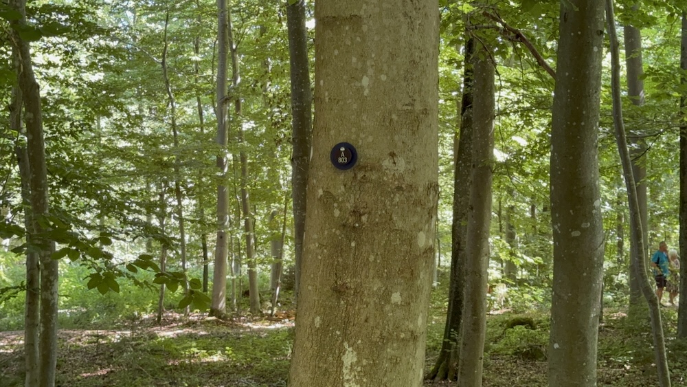 Die Fläche ist in neun Quartiere mit nummerierten Bäumen unterteilt, wobei markierte Familienbäume bis zu zwölf Urnen aufnehmen können und Einzelbäume für maximal 18 Gräber vorgesehen sind. Ich bin ein wenig umhergegangen.