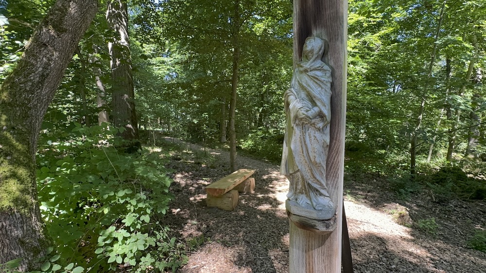 Hier erleben Besucher eine besondere Atmosphäre der Ruhe und Geborgenheit, getragen von dem alten Baumbestand aus Eichen, Buchen, Linden, Fichten, Lärchen, Ahorn und Kirschbäumen, deren teils uralte Exemplare dem Wald einen ehrwürdigen Charakter verleihen. Ich habe mit Besitzerin Gräfin Christiane von Spreti ein kurzes Gespräch geführt.