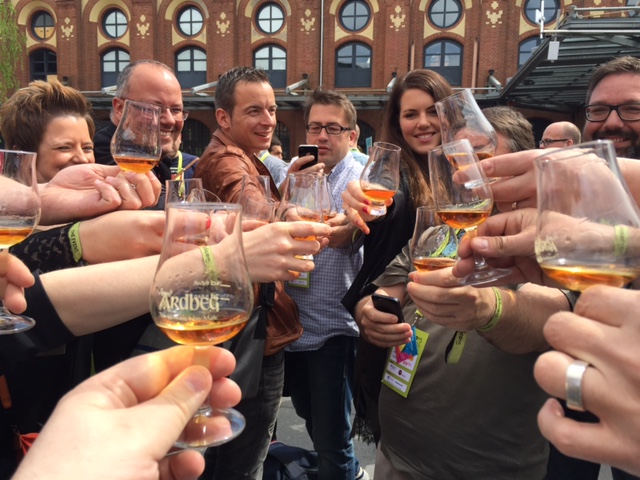 Während der re:public 15 #rp15 in Berlin war ich mehrmals Gast bei verschiedenen Whisky-Tastings. In Guerilla-Manier traf sich eine Gruppe Gleichgesinnter am Affenhügel oder auf dem Hof und probierte unterschiedlichste Whisky-Sorten. Ein Ardbeg war leider bei meinen Tastings nicht dabei. Es gab bei mir Schweizer Whisky zum Probieren. Ich brachte zu den Tastings mein Nosing-Glas mit – freilich mit Ardbeg-Aufdruck. Aber die Aktionen haben wirklich Spaß gemacht.