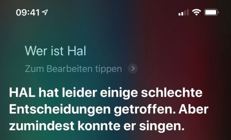 Um den Namen HAL gibt es schöne Geschichten, also Storytelling des Jahres 1968. SF-Autor Arthur C. Clarke sagte, dass HAL für Heuristic ALgorithmic stehe. Ich glaube vielmehr an die Hommage, dass HAL für IBM stand – immer ein Buchstabe zurück: H für I, A für B und L für M. Kubrick selbst hat sich immer darüber ausgeschwiegen. Übrigens, fragt mal Siri nach HAL. Es kommen schöne Aussagen.