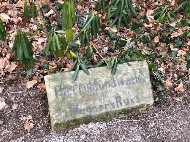 Das Grabschild für Russ im Garten der Villa Wahnfried in Bayreuth.