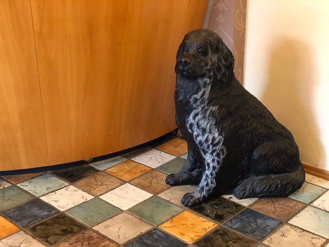 Dann traf ich Russ wieder – auf einer Veranstaltung des Ministerialbeauftragten für Oberfranken in Bad Berneck. Dort hielt ich in dem Hotel Lindenmühle einen Vortrag und im Foyer traf ich Russ wieder. Hier tauchte der Hund auf in Form einer Skulptur von Ottmar Hörl. Ich mag den Nürnberger Künstler sehr und habe ich auch einige seiner Kunstwerke, viele davon vom Künstler signiert.