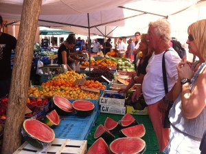 In dem kleinen Städtchen Santanyí auf Mallorca findet MIttwoch und Samstag immer der Wochenmarkt statt. Neben Obst und Gemüse aus spanischer Produktion bietet Händler aus Schwarzafrika „Markenprodukte“ wie Louis Vuitton-Taschen oder Rolex-Uhren an. Schlendern über den Markt macht Spaß, bis der kleine Hunger kommt. Und trotz Hitze von 27 Grad Celsius hat man Lust auf eine Crepe.