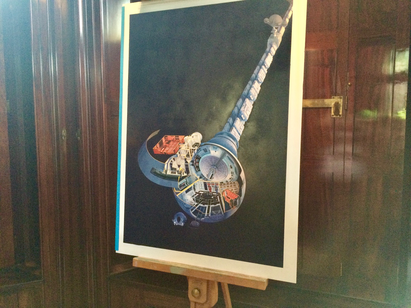„Stanley Kubrick wäre unheimlich berührt gewesen“, meinet Jan Harlan zu der Ausstellung. „Kubrick war sehr stolz auf seinen Film, obwohl er das Publikum damals geteilt hat. Inzwischen ist der Film ja etabliert als Meilenstein in der Geschichte.“ Harlan lobte die Sorgfältigkeit und Vielfältigkeit der Ausstellung und ich kann dies nur bestätigen. Kubrick hat ja die Modelle nach Abschluss der Dreharbeiten vernichten lassen, aber eben nicht alles: Und das Filmmuseum hat wunderbare Details aus dem Archiv des Meisterregisseurs ausstellen können. Ungewöhnlich bei Kubrick: Es gibt sogar Sketches und Zeichnungen zu sehen, die später nicht Eingang in den Film gefunden haben. Es handelt sich um einen kleinen Teich auf der Raumstation.