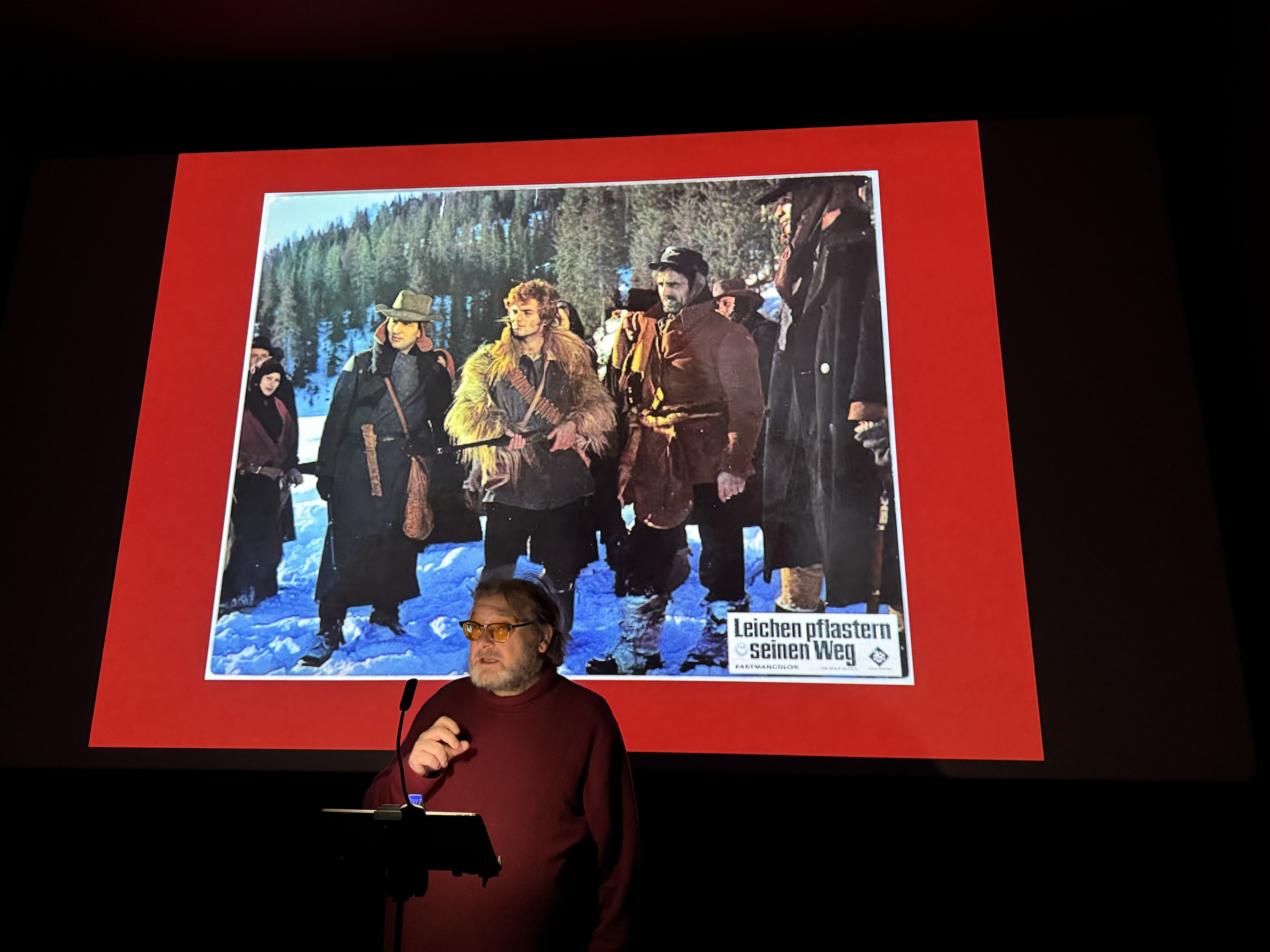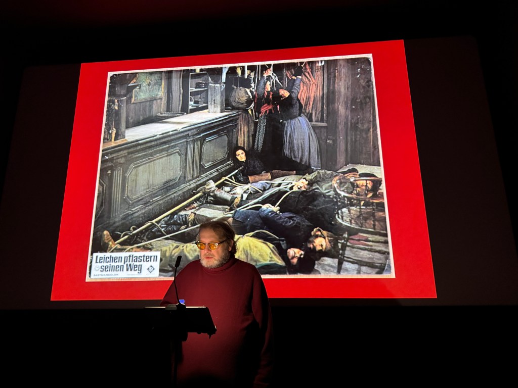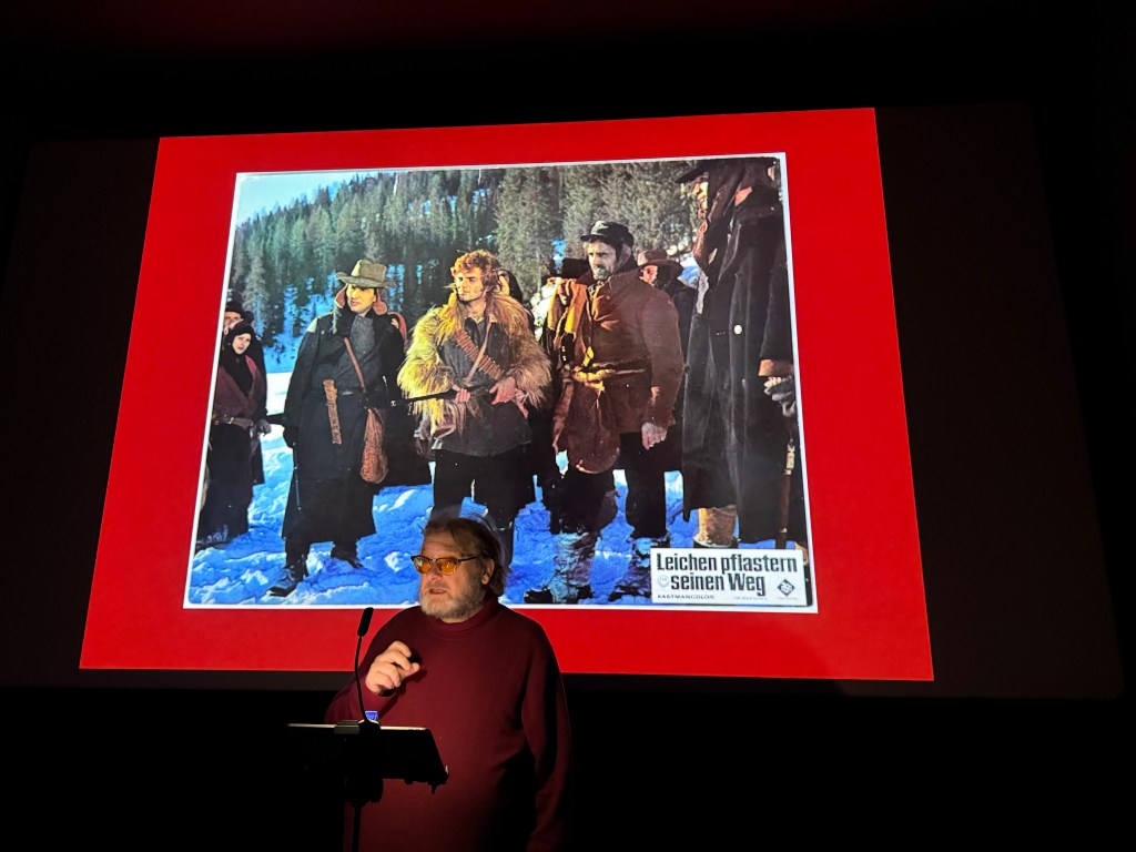 “Leichen pflastern seinen Weg” ist ein Italo-Western aus dem Jahr 1968, inszeniert von Sergio Corbucci, der als einer der bedeutendsten Regisseure des Genres gilt. Der Film, international bekannt als “Il grande silenzio” oder “The Great Silence”, zeichnet sich durch seine düstere Atmosphäre und unkonventionelle Herangehensweise an das Western-Genre aus. Ich zeigte und besprach diesen harten Western bei meiner jüngsten Western-Matinee im Scala Fürstenfeldbruck. Die nächste Western-Matinee findet am Sonntag, 26.Januar statt. Ich bespreche und zeige den Film The Wild Bunch – Sie kannten kein Gesetz. Karten gibt es hier.