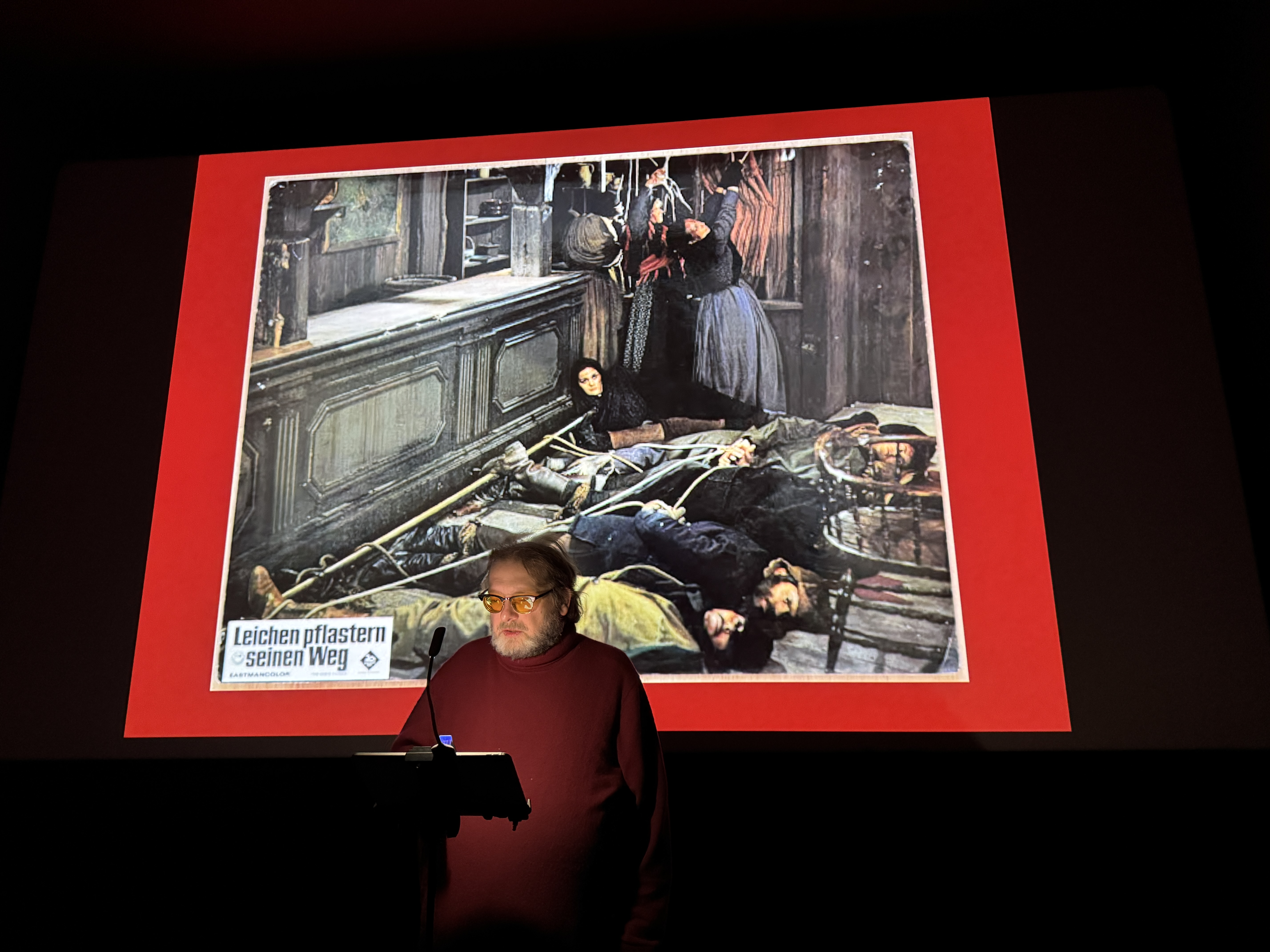 Die Handlung von Leichen pflastern seinen Weg spielt in den schneebedeckten Bergen Utahs während eines strengen Winters im späten 19. Jahrhundert. Der stumme Revolverheld Silence, verkörpert von Jean-Louis Trintignant, wird von verfolgten Gesetzlosen angeheuert, um sie vor skrupellosen Kopfgeldjägern zu schützen. Klaus Kinski brilliert in der Rolle des eiskalten Kopfgeldjägers Loco, der ohne Gewissensbisse Jagd auf die Flüchtigen macht. Zwischen Silence und Loco entspinnt sich ein tödlicher Konflikt, der von Rache, Habgier und moralischer Ambivalenz geprägt ist. Hier ist der Vortrag als Aufzeichnung.