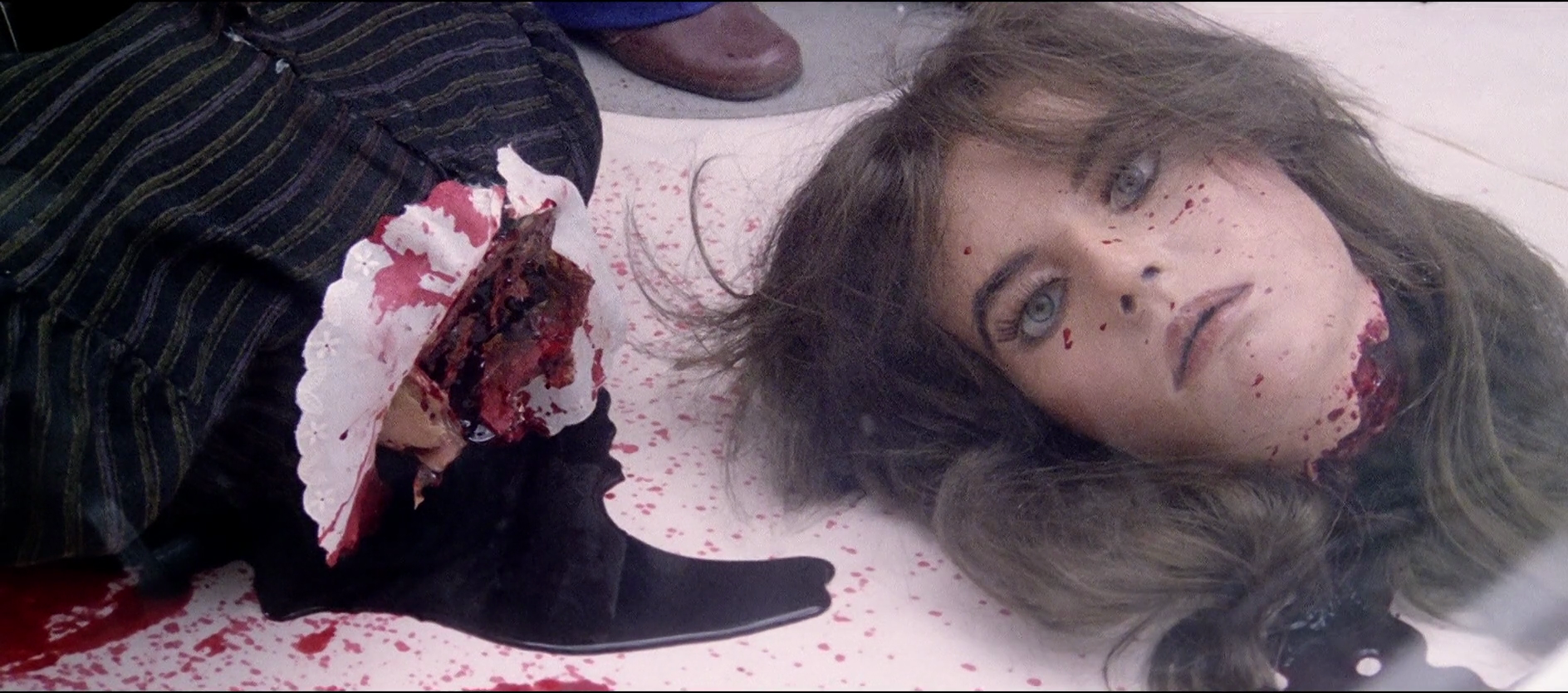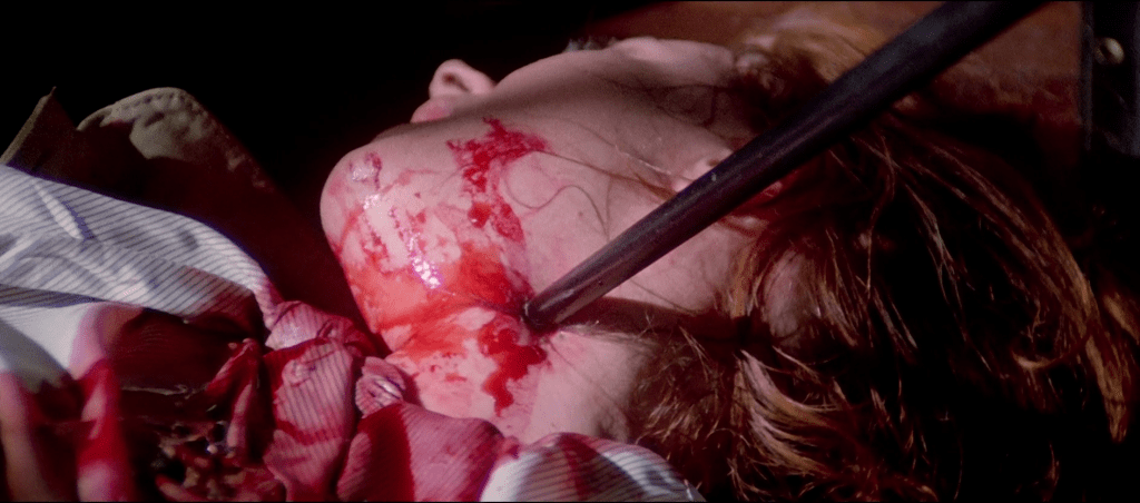 Gewalt wie im Fiebertraum Die Gewalt ist brutal, explizit und bisweilen exzessiv – typisch für Fulci. Dabei geht es ihm weniger um Schockeffekte im modernen Sinne als um das Erzeugen einer grotesken, beinahe surrealen Atmosphäre. Körper werden zerschnitten, Kehlen aufgeschlitzt – doch der Horror wirkt eher wie aus einem Fiebertraum denn wie aus einem klassischen Slasherfilm.